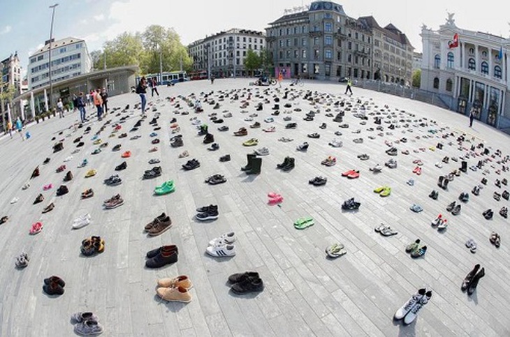 Thụy Sĩ: dùng giày biểu tình chống biến đổi khí hậu, vẫn giữ đúng cự ly
