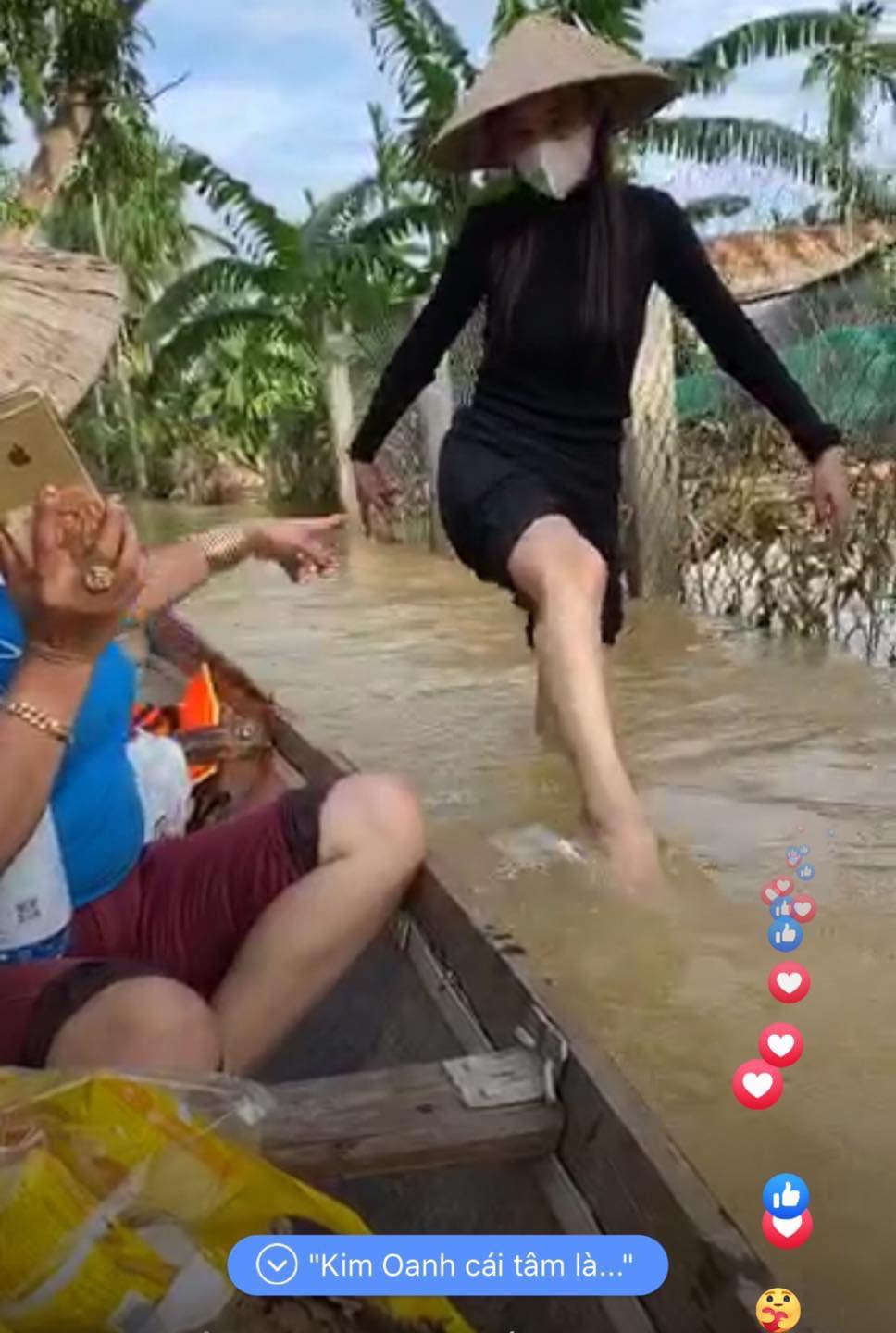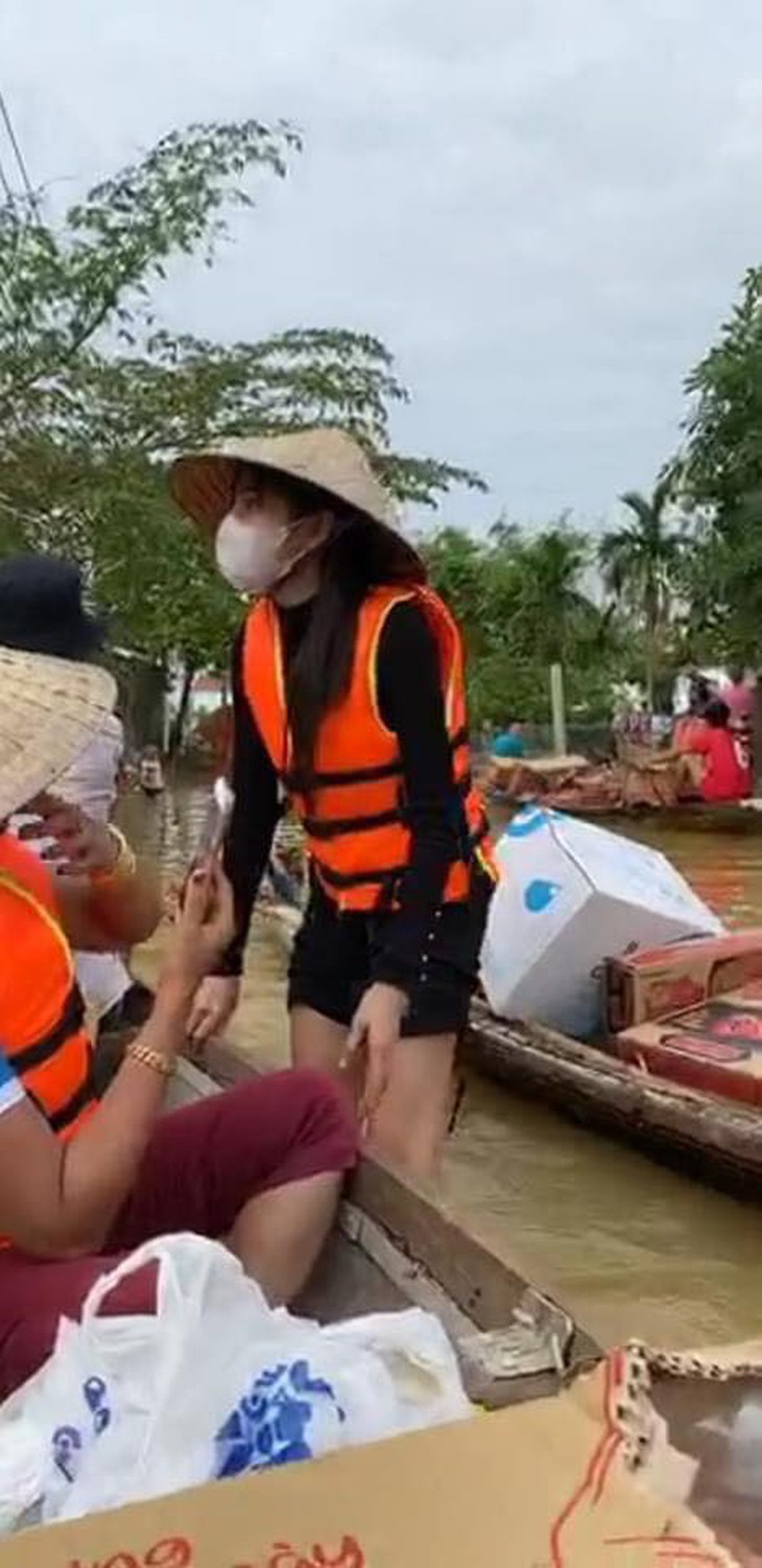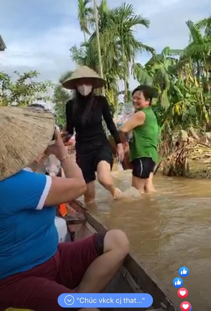 Có những khúc đường ngập lụt bị mắc kẹt, cô đã xuống thuyền để đẩy thuyền nhu yếu phẩm cùng mọi người.