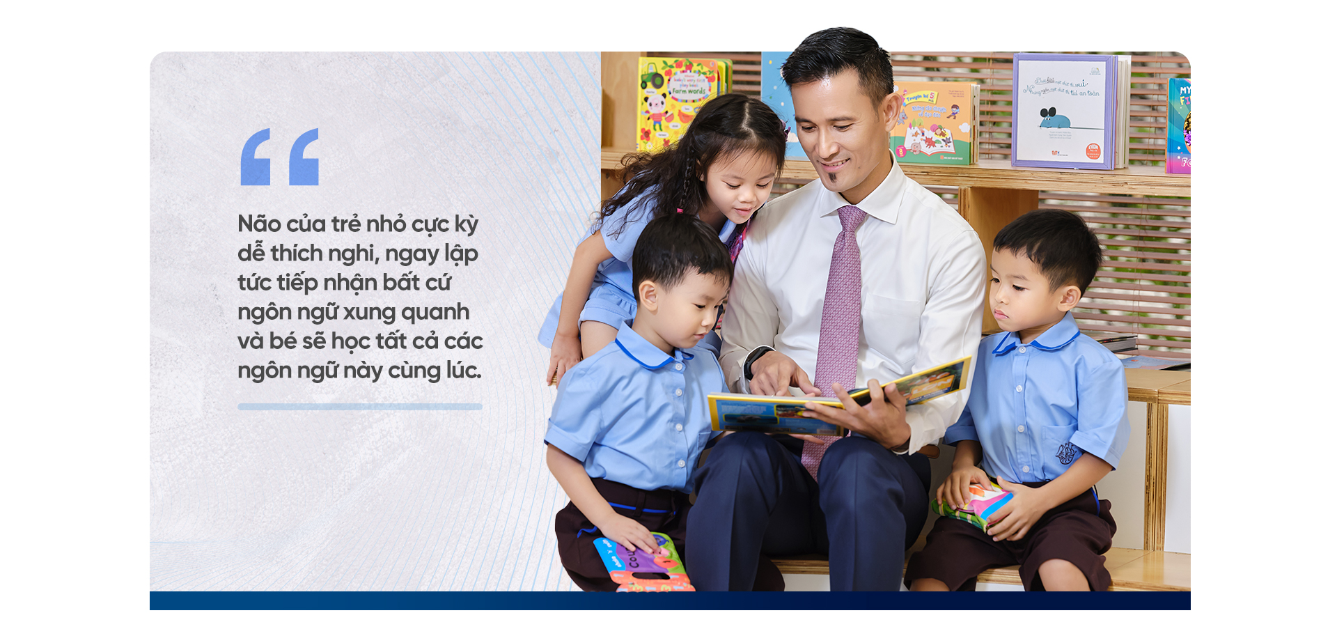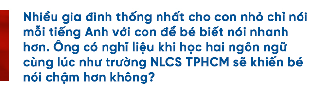 Tôi nghĩ ba mẹ đã đánh giá thấp con trẻ. Nếu chỉ có một phụ huynh nói tiếng Việt, người còn lại nói tiếng Anh, bé sẽ nhanh chóng học cả hai ngôn ngữ cùng lúc. Thậm chí, nếu trong môi trường của bé có thêm một ngôn ngữ thứ ba, bé sẽ học luôn cả ngôn ngữ thứ ba.