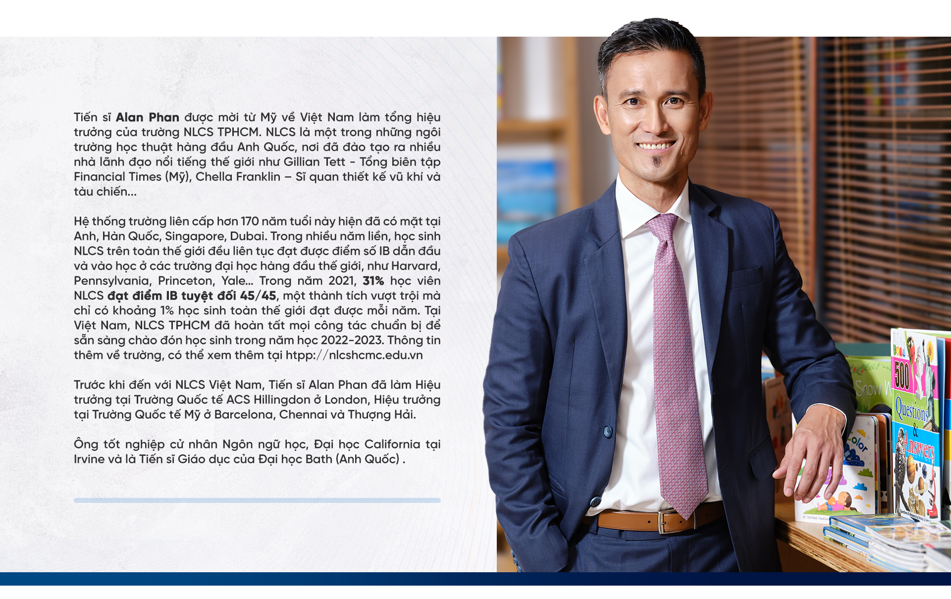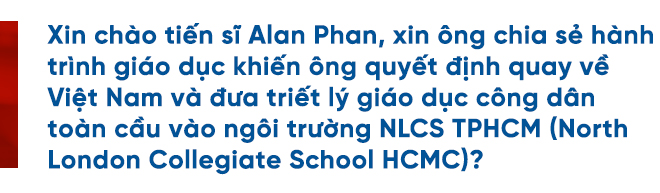 Tiến sĩ Alan Phan là một trong những tên tuổi hàng đầu trong khối giáo dục quốc tế có mặt tại Việt Nam với hành trang 22 năm kinh nghiệm làm hiệu trưởng nhiều trường quốc tế từ Chennai đến Thượng Hải, từ London đến Tây Ban Nha.