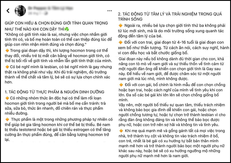 Cụ thể, đây là một khoá học dành cho các bậc phụ huynh "Giúp con không chọn nhầm giới tính" của Dr. Pepper - một tiến sĩ tâm lý khá nổi tiếng trên bình diện truyền thông. Vị tiến sĩ đã đưa ra những thông tin "Không có giới tính nào sai, nhưng việc chọn nhầm giới tính thì có, và bố mẹ hoàn toàn có thể can thiệp đúng lúc để giúp con nhìn nhận mình đúng và chọn đúng". Sau đó, cô cho rằng có 2 nguyên nhân "gây ra" một ai đó là gay (đồng tính nam) hoặc lesbian (đồng tính nữ) hay một bản dạng giới nào đó khác với số đông, bởi:
