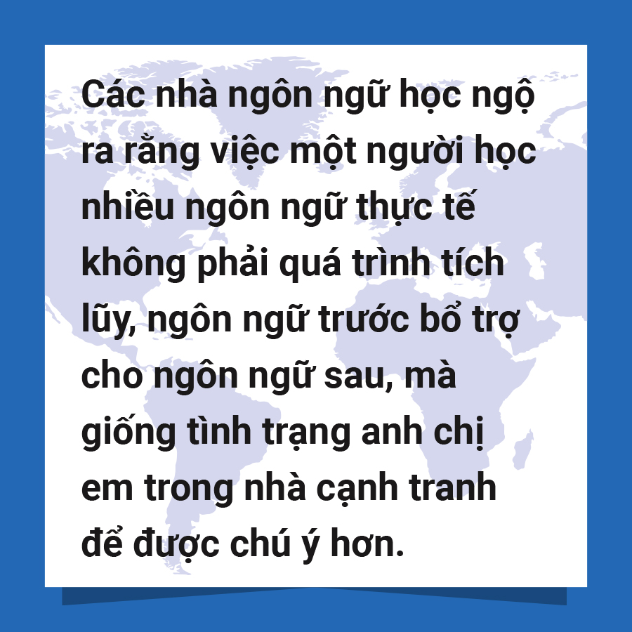 "Khi bạn có hai ngôn ngữ sống trong não, mỗi lần bạn nói điều gì đó, mỗi lần bạn dùng một từ, mỗi lần bạn ghép câu, bạn phải đưa ra lựa chọn. Đôi khi ngôn ngữ này được chọn, nhưng có khi lại là ngôn ngữ kia".