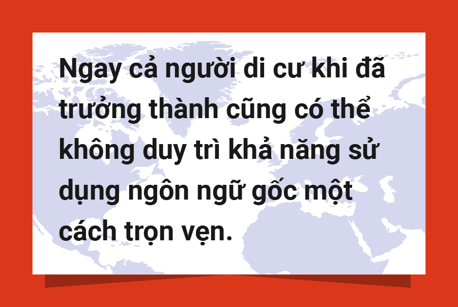 Chuyện người di cư quên 4từ vựng trong ngôn ngữ mẹ đẻ, diễn đạt câu cú kỳ quặc, hay nói tiếng mẹ đẻ bằng giọng nước sở tại vốn không có gì lạ.