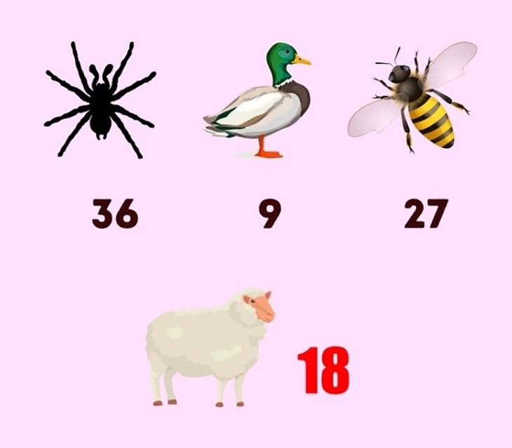 Giá trị của mỗi con vật là tổng số chân của nó. Mỗi chân = 4,5.