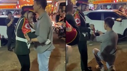 Sáng sớm, các tiểu thương cầm cờ đi diễu hành vòng quanh chợ mừng đón lễ 30-4 và 1-5 khiến nhiều người xem thích thú.