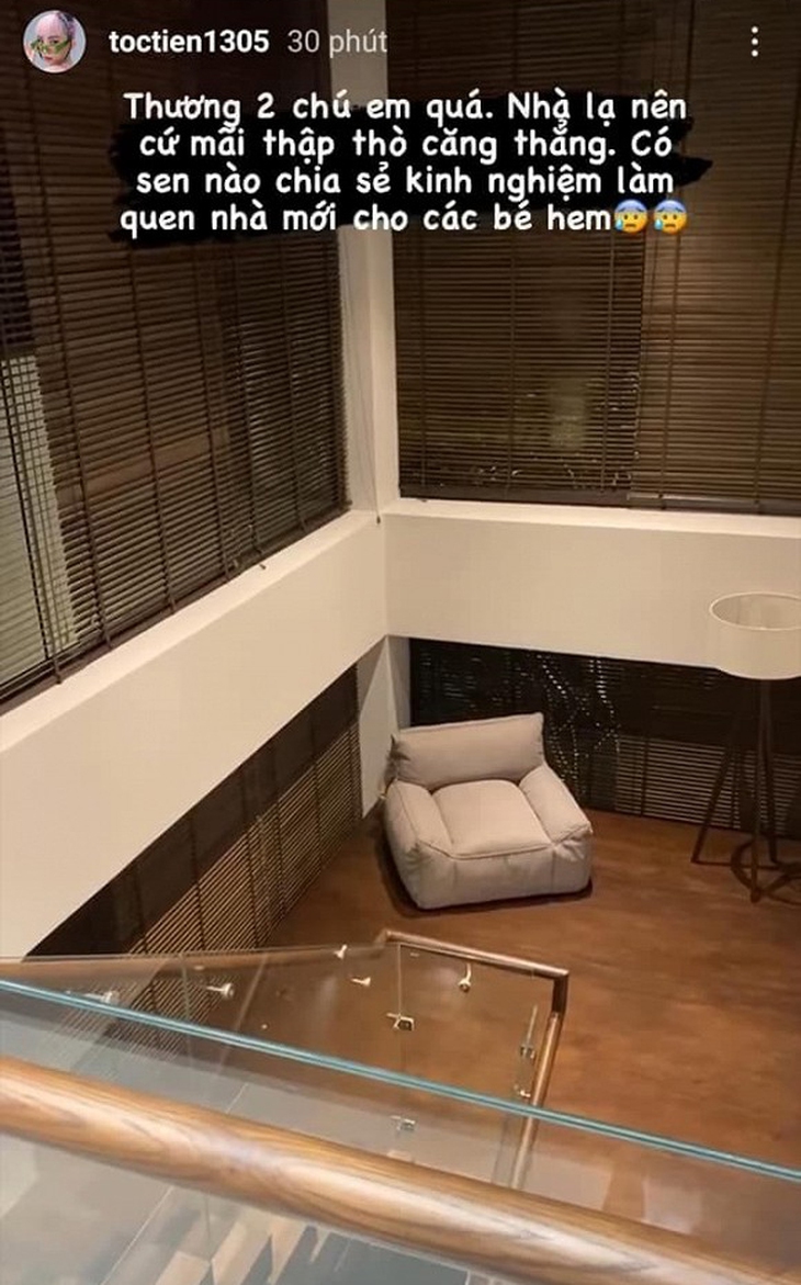 Tóc Tiên khoe biệt thự tại TP HCM đang sống cùng ông xã.Tối 30-9, Tóc Tiên khiến dân tình choáng ngợp khi lần đầu khoe khéo biệt thự mới toanh ở quận 2 (TP HCM). Tổng diện tích của cơ ngơi này lên đến 270m2, gồm 3 tầng lầu cùng một tầng hầm.