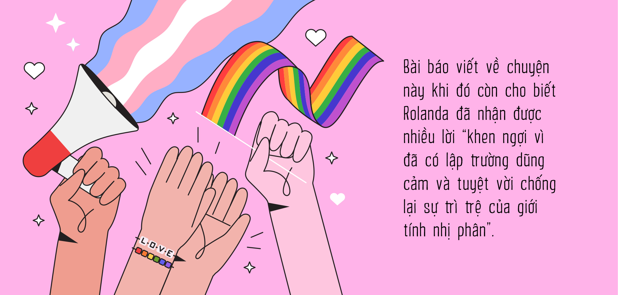 Ngay lập tức, bà bị cáo buộc là "kẻ bài chuyển giới". Nữ nhà báo còn lại, người duy nhất trong số các đồng nghiệp dám lên tiếng ủng hộ bà, đã phải "tự nguyện ra đi để có thể viết đúng những điều mình nghĩ".