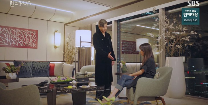 Theo đó, ngồi trên ghế sofa ở sảnh Hera Palace, Cheon Seo Jin liếc Joo Dan Tae với ánh mắt đầy kiêu kỳ khi anh đi ngang qua, vờ như không để ý đến cô.
