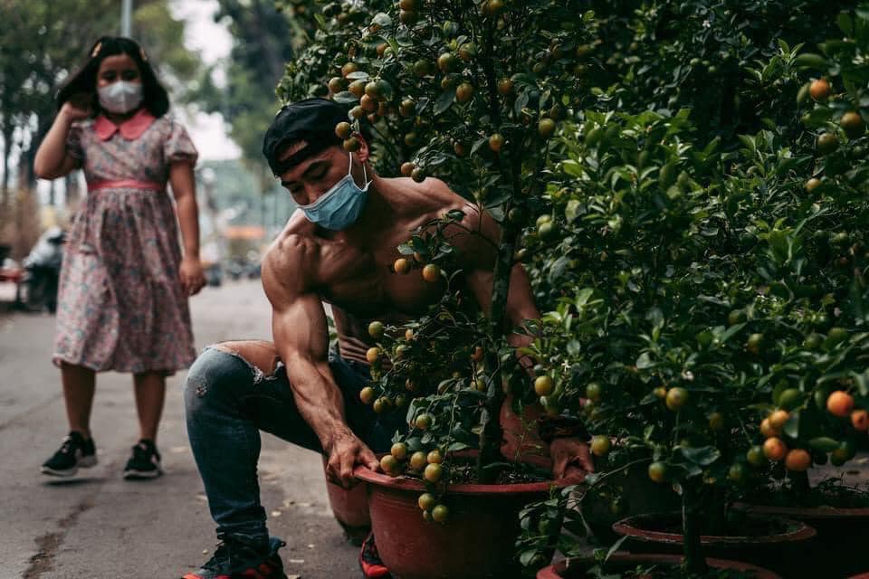 Cơ bắp cuồn cuộn, nam thanh niên bê những chậu tắc khiến dân tình ngã ngửa. (Nguồn: MXH)Chưa kịp dứt xôn xao trước anh chàng Lee Won cởi trần mặc khố bên xe dưa hấu Long An giữa phố Sài Gòn, mới đây dân mạng lại tiếp tục lan truyền hình ảnh của một trai đẹp 6 múi khác đang "bế tắc".