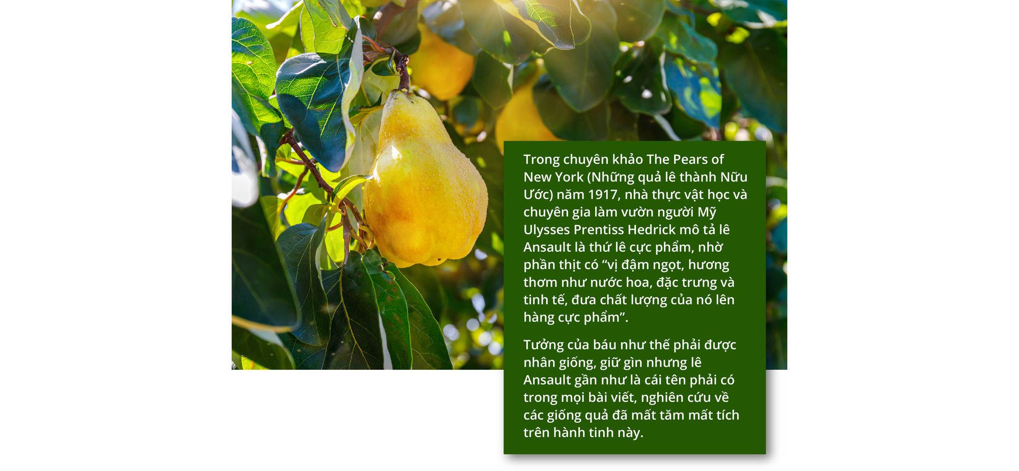 Đây là mô tả "nghe thấy thèm" của nhà thơ kiêm giáo sư Anh ngữ Đại học Knox (Illinois, Mỹ) Beth Ann Fennelly về một giống lê đã mất: lê Ansault.