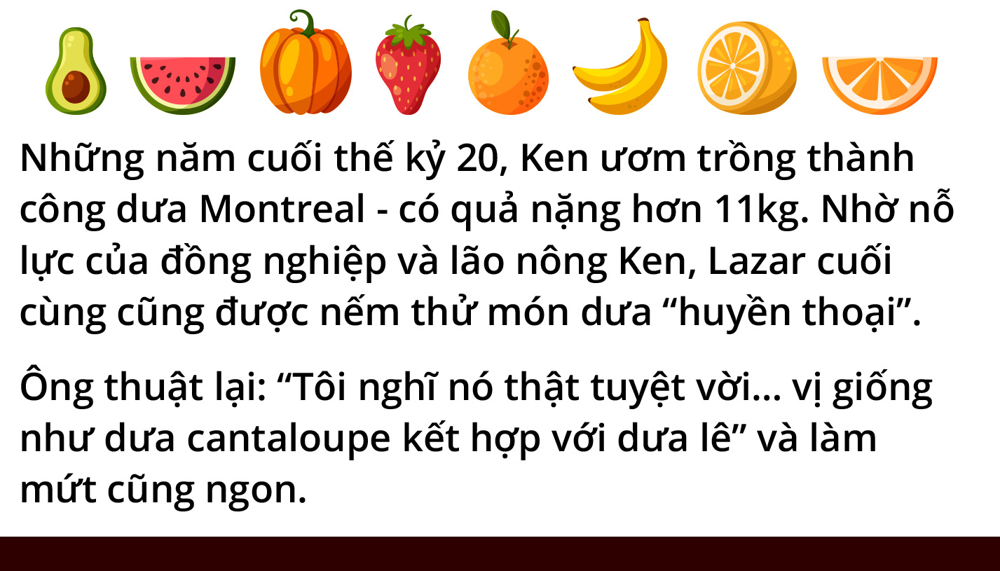 Trong một bài báo trên tờ The Montreal Gazette năm 1991, nhà báo Barry Lazar - người đầu tiên lật lại lịch sử giống dưa này - cho rằng dưa Montreal có chuyện đời phi thường hơn mọi loại rau củ quả khác.