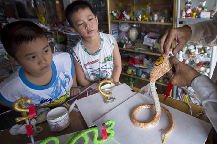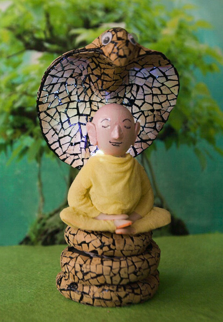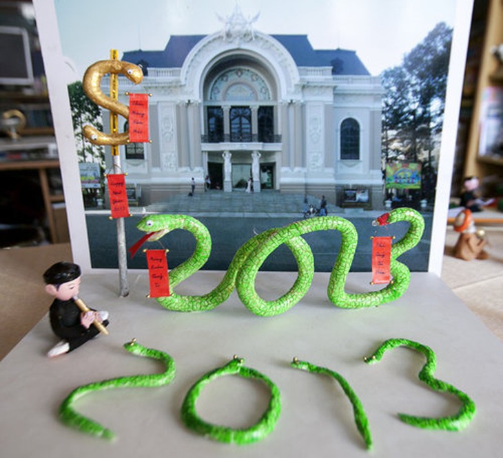 TTCT - Trong căn hộ tầng 4 chung cư Nguyễn Văn Lượng 2 (Q.Gò Vấp, TP.HCM) tĩnh lặng, ông thầy giáo dạy tiếng Anh miệt mài bên những hình tượng xinh xắn do ông tạo ra chủ yếu từ vỏ trứng. Phóng to Thầy Tâm bên tác phẩm độc đáo mừng xuân Quý Tỵ 2013 - Ảnh: L.Q.N. Thú chơi của thầy Nguyễn Thành Tâm bắt đầu từ năm 2001 và liên tục cho đến nay. Căn hộ của ông kín chỗ với hơn 500 mẫu hình tạo ra từ đủ loại vỏ trứng, từ loại lớn nhất như trứng đà điểu cho đến vỏ trứng bé tẹo của chim sẻ. Đặc biệt trong suốt 12 năm, năm nào thầy Tâm cũng làm ra một bộ sưu tập về con giáp năm đó. Vì vậy, năm Quý Tỵ này ông có hẳn một “trại rắn” độc đáo mang nhiều ý nghĩa mừng xuân. Phóng to Những em học sinh tranh thủ đến trước giờ học tiếng Anh xem thầy Tâm làm hình tượng rắn - Ảnh: L.Q.N. Phóng to Bộ khung của chú rắn được làm từ dây đồng, bột trứng và đất sét mỹ thuật - Ảnh: L.Q.N. Phóng to Hình tượng rắn thần Naga - Muclinda che mưa bão cho Đức Phật dưới gốc bồ đề - Ảnh: L.Q.N. Phóng to Rắn mang hình tiền tệ với mong mỏi một năm thành công cho nền kinh tế - Ảnh: L.Q.N. Phóng to Hình tượng rắn trong biểu tượng của Tổ chức Y tế thế giới - Ảnh: L.Q.N. Tags: Nghệ thuậtTrại rắnThầy Nguyễn Thành TâmLê Quang Nhật