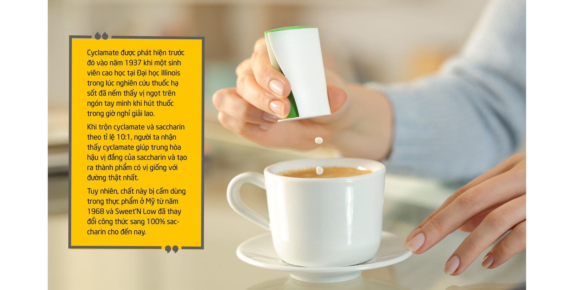 Trong hơn một thế kỷ kể từ lúc nó được tìm thấy lần đầu, chất làm ngọt nhân tạo đã trở thành một phần trong trải nghiệm ăn uống của người dân Mỹ và lan ra toàn cầu qua các sản phẩm chế biến sẵn.