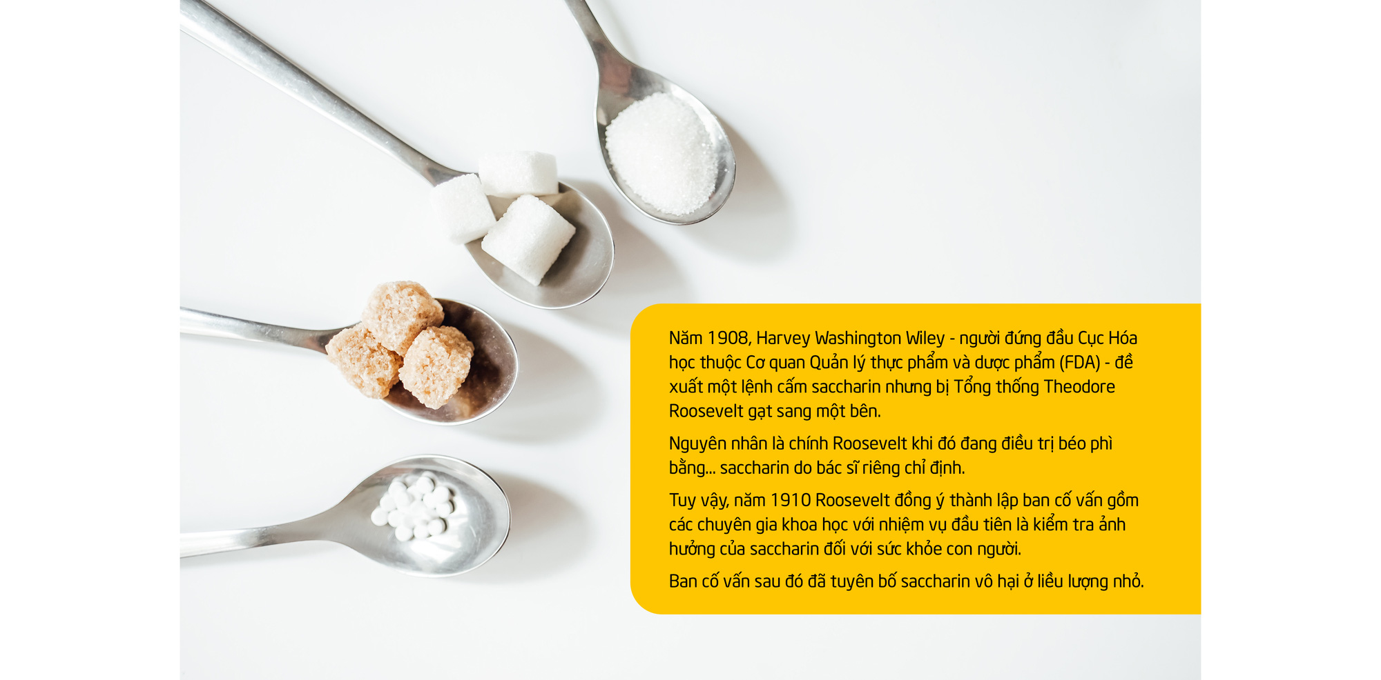 Nhưng Wiley chưa bỏ cuộc: ông lập luận rằng vì saccharin tồn tại trong quá nhiều loại thực phẩm chế biến sẵn phổ biến, một người tiêu dùng trung bình ở Mỹ sẽ tiêu thụ lượng chất làm ngọt nhiều hơn mức khuyến nghị của các nhà khoa học mà không hề hay biết.