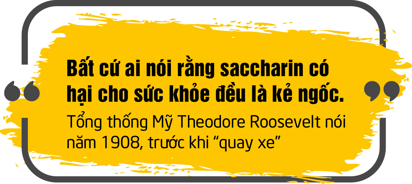 Năm 1965 aspartame được phát hiện; năm 1976 là sucralose; và mới đây nhất vào năm 2002 là neotame - hợp chất ngọt hơn đường từ 7.000 đến 13.000 lần. Ngày nay, saccharin - một thời là vị vua không thể tranh cãi của các chất làm ngọt nhân tạo - đã tụt hậu và bị thay thế bởi thứ ngọt ngào tiếp theo.