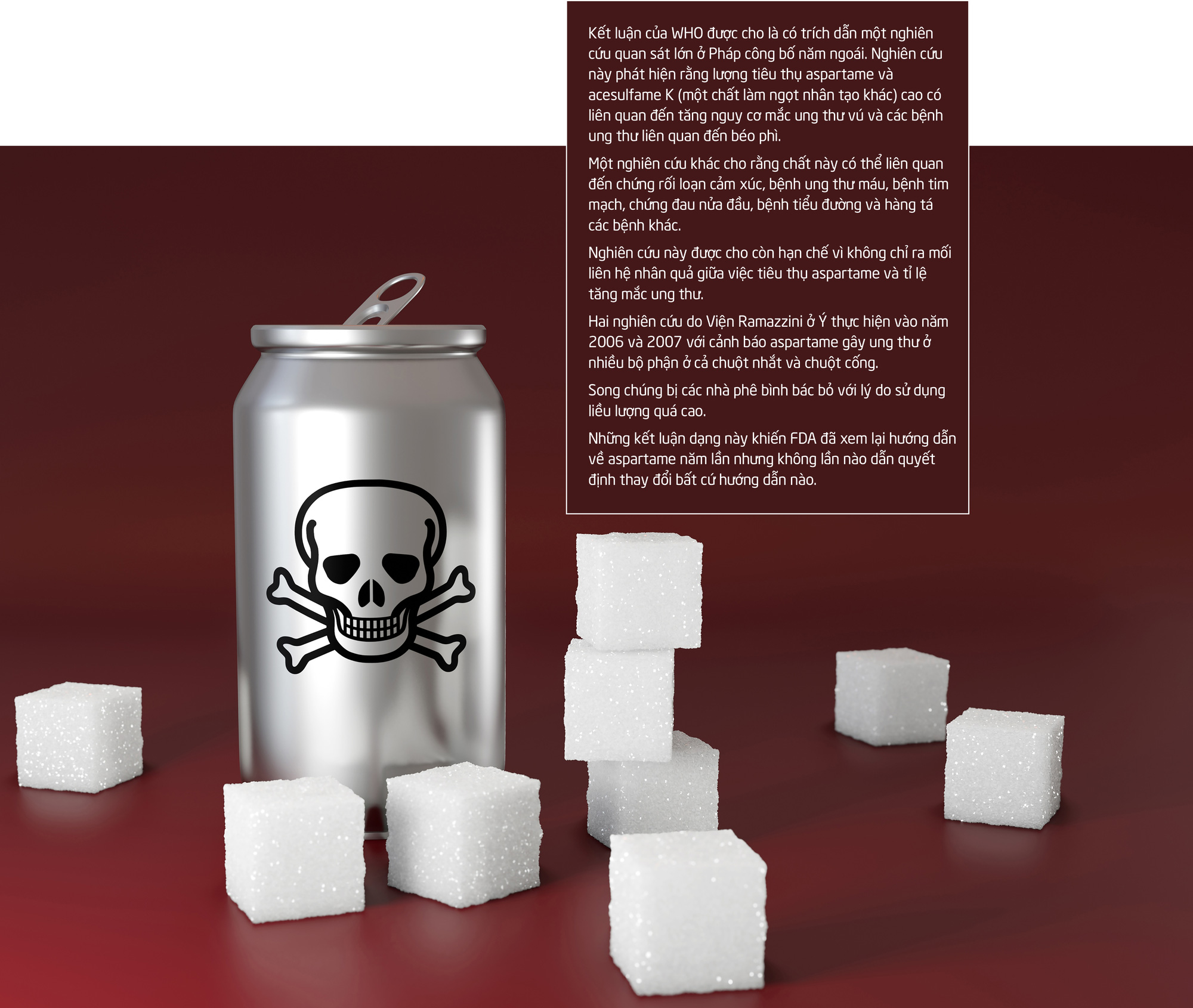 Ngày 14-7, trang web của Tổ chức Y tế thế giới (WHO) đăng thông cáo quan trọng nói rằng các đánh giá về tác động sức khỏe của aspartame cho phép phân loại chất làm ngọt nhân tạo này là chất có khả năng gây ung thư cho người (Nhóm 2B).