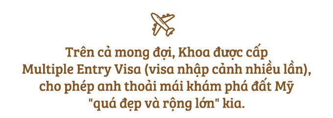 Khi đang dừng chân tại tại Bogota, Colombia, chàng trai Gò Công sinh năm 1988 quyết định xin visa du lịch vào Mỹ. Hồ sơ của Khoa có đầy đủ yếu tố để bị... từ chối: độc thân, không có ràng buộc với gia đình, không có việc làm ổn định, không có tài sản, không người bảo lãnh, hộ chiếu có visa của Iran và Pakistan,... Nhưng anh vẫn được cấp visa Mỹ nhờ lộ trình minh bạch, rõ ràng.