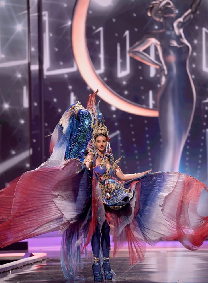Hoa hậu Thái Lan diện thiết kế hình cáĐiển hình như hoa hậu Thái Lan diện hẳn một thiết kế hình cá lộng lẫy, hay hoa hậu Indonesia chọn thiết kế rồng đất, hoa hậu Campuchia lại mạnh mẽ trong trang phục chiến binh...