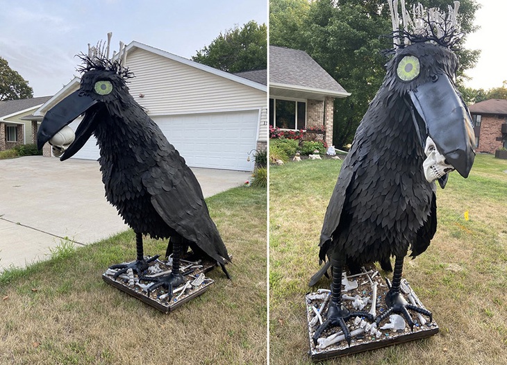 Vua Quạ Draven, cao gần 2 mét và được làm từ vải bạt, thảm trải sàn, dây điện, lồng chim, ống nhựa pvc,...
