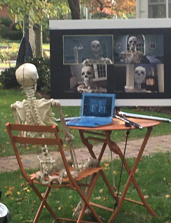 Bộ xương đang làm việc online qua ứng dụng Zoom, phổ biến nhất mùa dịch Covid vừa qua.