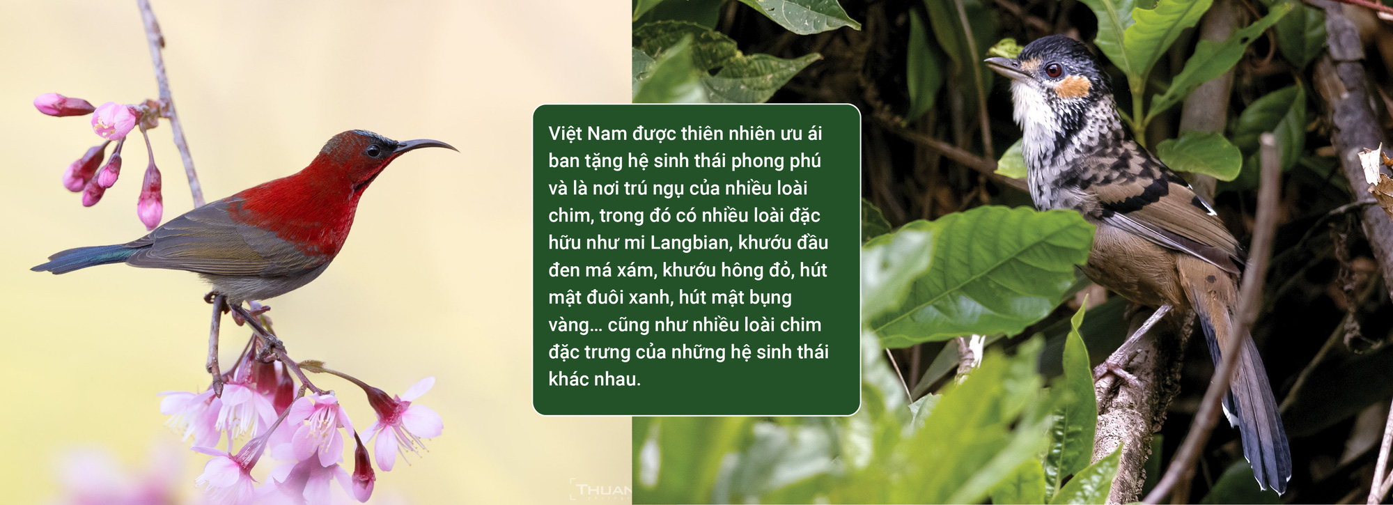 Các khu vực như Vườn quốc gia Tràm Chim, Vườn quốc Bidoup (cao nguyên Lâm Đồng), Vườn quốc gia Cát Tiên, cao nguyên Kon Tum là những điểm đến hấp dẫn cho các nhà nghiên cứu, nhiếp ảnh gia và du khách đam mê quan sát chim.
