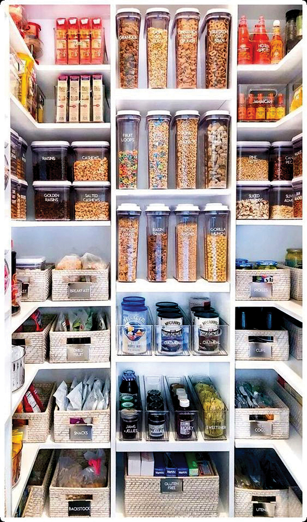 Những tín đồ của việc sắp xếp sau khi trở về từ siêu thị sẽ không hài lòng khi để thực phẩm đã mua ở trong bịch nguyên thủy của chúng. Họ sẽ dành cả buổi để mở túi, trút chúng từ bịch vào hũ đồng bộ, dán nhãn lên, rồi khoe lên mạng xã hội.