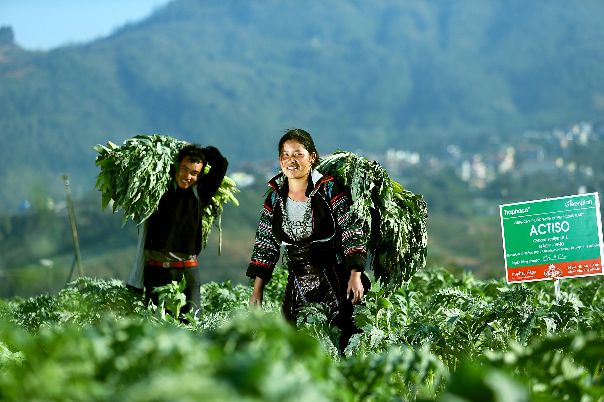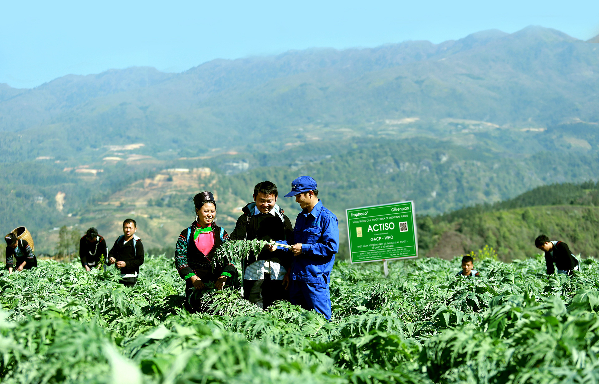 Nhân viên kỹ thuật Traphaco hướng dẫn bà con dân tộc tại Sa Pa, Lào Cai trồng Actiso theo chuẩn GACP-WHO