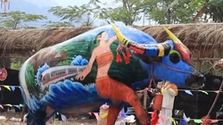 Chú trâu gối đầu lên đùi sen, rồi nằm im ngủ ngon khiến nhiều người xem thích thú.