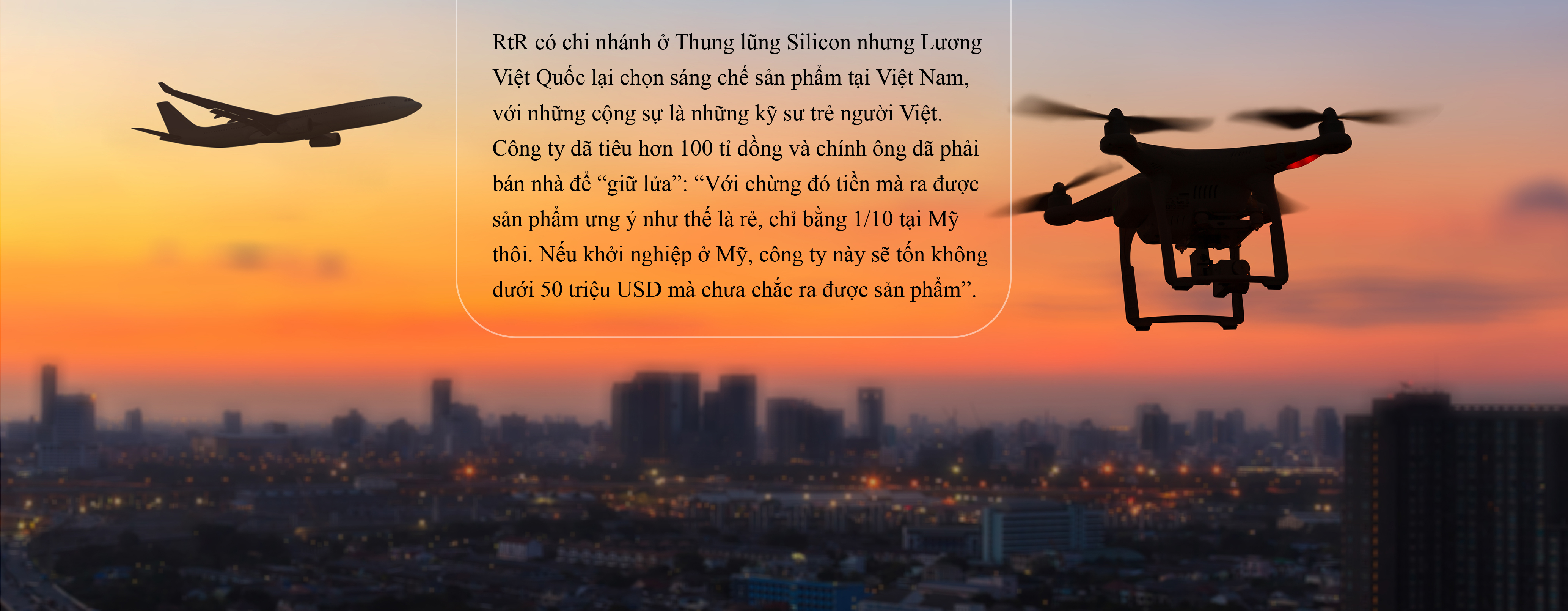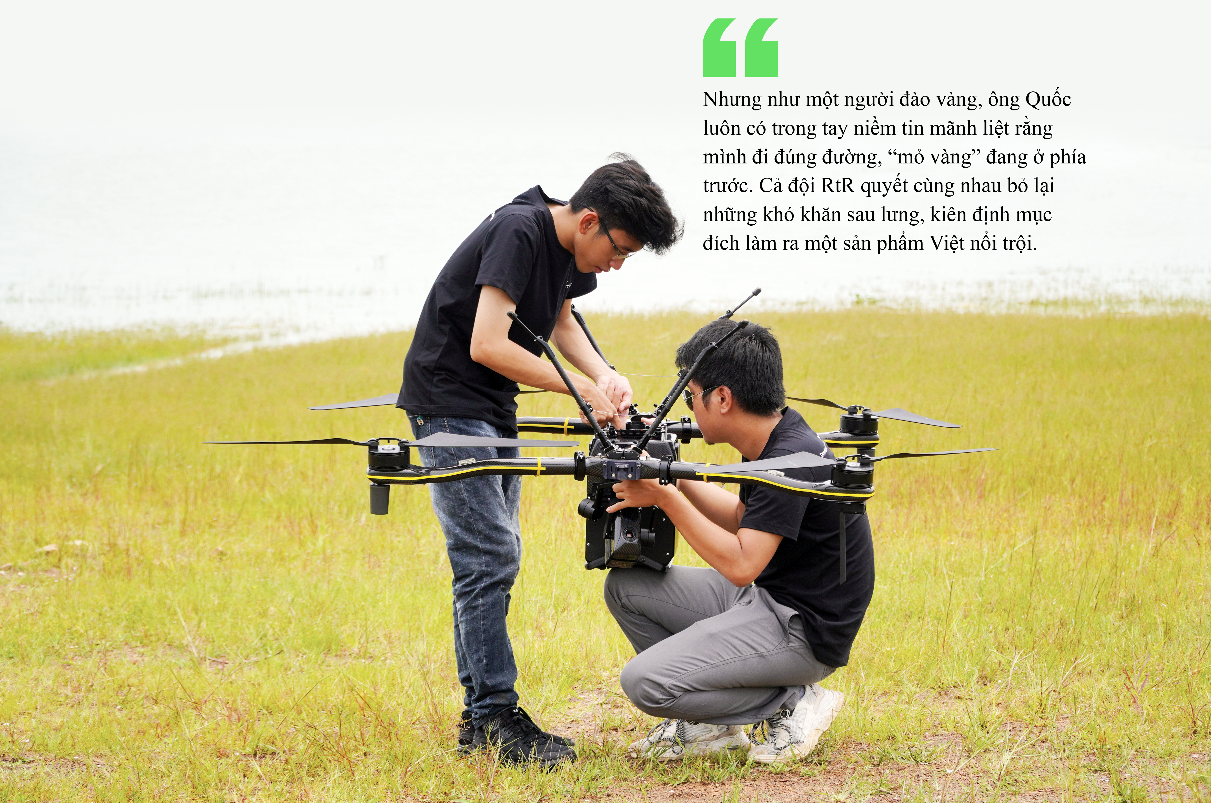 Ông Quốc bật laptop mở cho chúng tôi xem bản đồ các quốc gia sản xuất drone trên toàn cầu, rất nhiều quốc gia hàng đầu về công nghệ lại không có tên. Ông đinh ninh nói: "Năm 2023 người Việt có thể tự hào khi RtR sẽ cắm lá cờ đỏ sao vàng đầu tiên lên tấm bản đồ drone thế giới".
