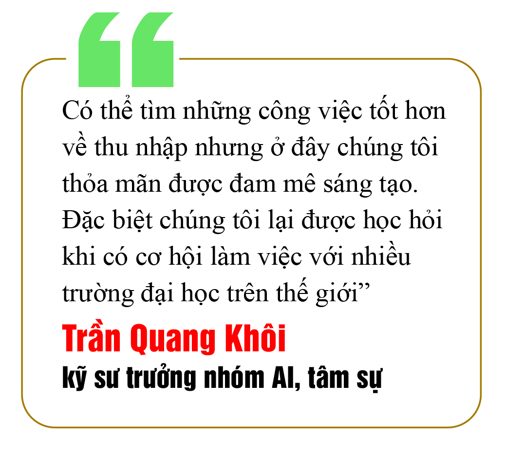 Ông Quốc còn phải gọi vốn thêm từ người thân, bạn bè bằng uy tín cá nhân và niềm tin rằng RtR sẽ làm "ra ngô ra khoai" một sản phẩm công nghệ Việt. Tài chính là một chuyện, gầy dựng đội ngũ 60 kỹ sư trẻ đầy đam mê sáng tạo lại càng không dễ.