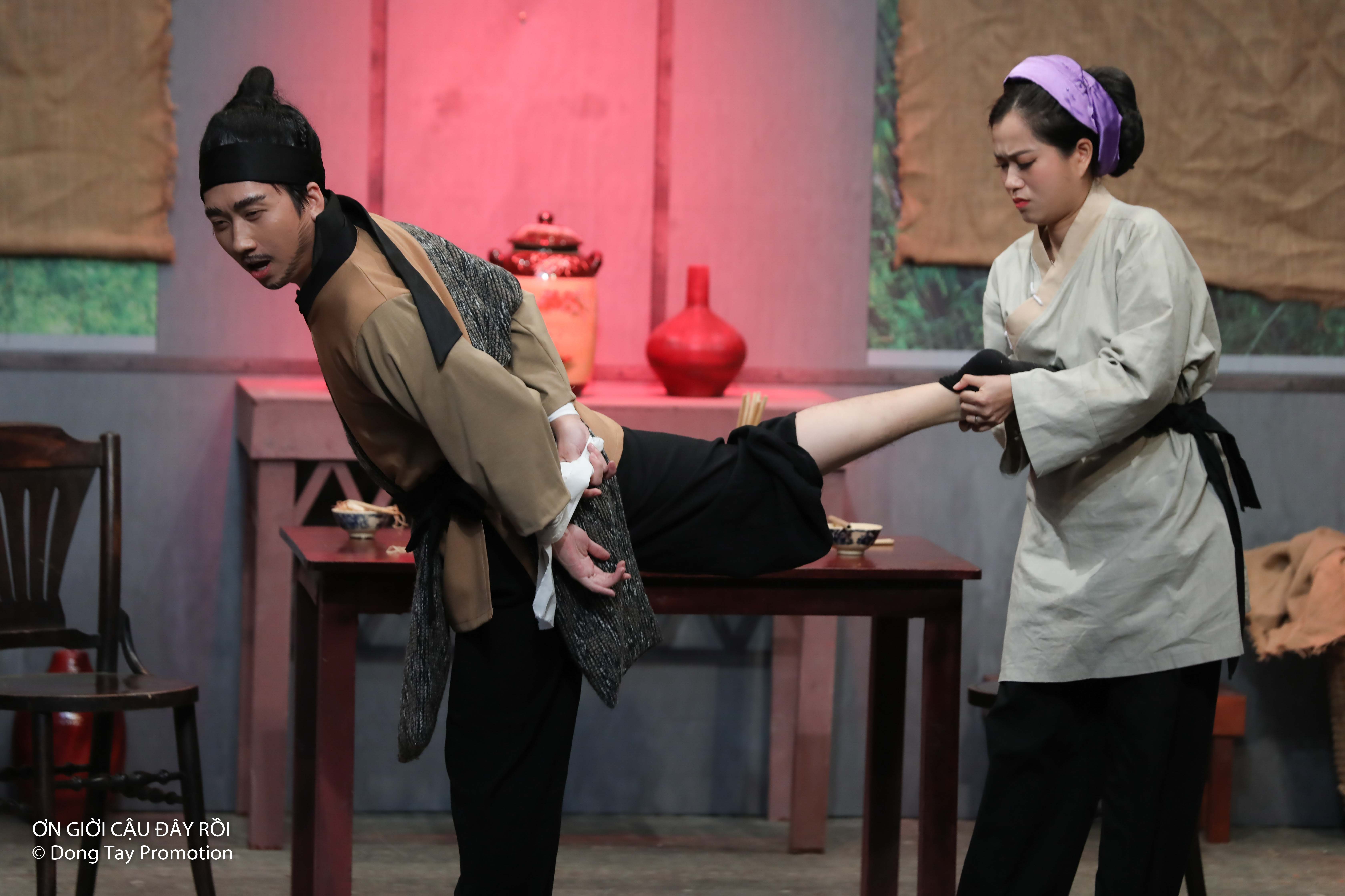 Phát La "gài" Lâm Vỹ Dạ cởi vớỞ căn phòng đầu tiên, Phát La đối diện với bộ đôi trưởng phòng Lâm Vỹ Dạ - Mạc Văn Khoa. Tại đây, Phát La vào vai người chồng giang hồ đã “rửa tay gác kiếm” của Lâm Vỹ Dạ, mắc chứng bệnh lạ tấn công người khác bằng kiếm vào ngày 8-3 hằng năm nên anh chàng bị vợ trói chặt đôi tay.