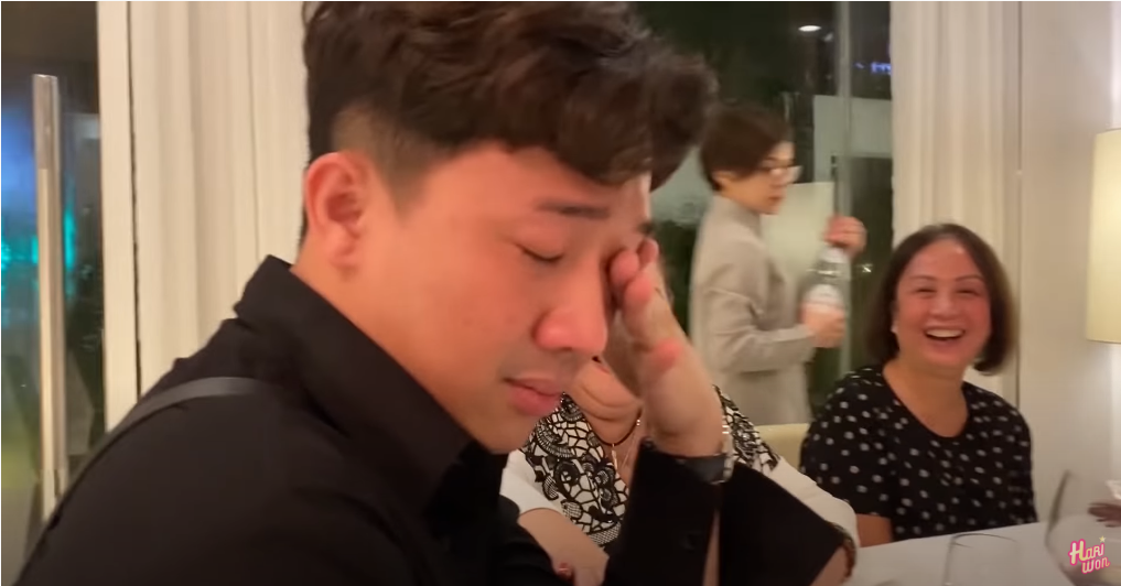 Trấn Thành nức nở khi hát cải lương. (Nguồn clip: Kênh YouTube Hari Won)