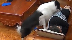 Hai thanh niên định ra tay bắt 2 con chó thì giật mình thấy chủ nhà đang ngồi ở ghế đá nhìn chằm chằm. Chúng liền đánh trống lảng bỏ đi, xem như không có gì.