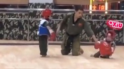 Hai võ sĩ nhí có màn chào hỏi giao môi khiến trọng tài phải bó tay.