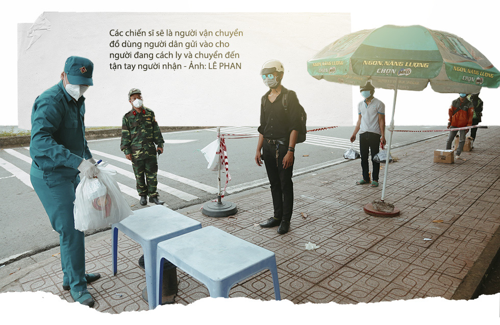 Ở đó, những người lính hằng ngày đang lo cơm nước, vận chuyển thiết yếu cho người bệnh. Quân đội cũng tiếp nhận nguồn lực từ Bộ Quốc phòng, các quân khu, sư đoàn, lữ đoàn của TP và các tỉnh bạn, cũng như vận động quần chúng đóng góp để chăm lo cho người dân với hàng trăm tấn hàng hóa.