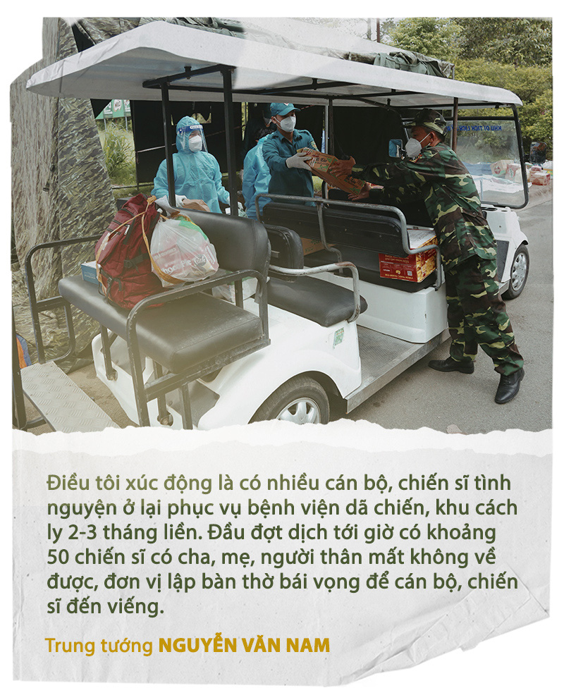 Sau này nhiều người được về mới thấu hiểu, chia sẻ cho khó khăn, vất vả của lực lượng chống dịch. Tôi cũng cho làm nhiều video clip để người dân chia sẻ, thấu hiểu, tin tưởng bộ đội. Người dân mà lạc quan, yêu đời, thấu hiểu sẽ mau hết bệnh, chứ tức tối, giận hờn thì ảnh hưởng tâm lý bác sĩ, tâm lý anh em chiến sĩ.