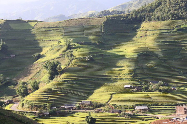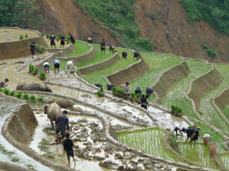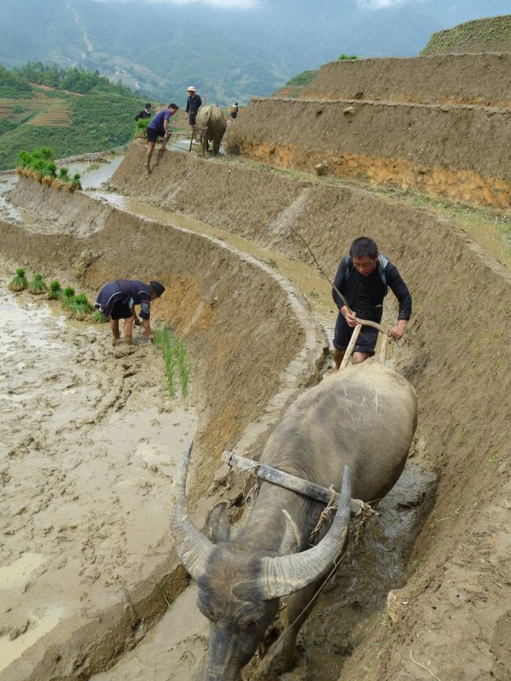 TTCT - Cái bụng anh thương em nhiều như lá rừng, em không có lòng thì thôi, có lòng thì về ta ở với nhau một đêm. Em không có lòng thì thôi, có lòng thì về, ta ở với nhau một ngày". Những thửa ruộng bậc thang ở Hoàng Su Phì (Hà Giang). Ảnh: Huy ThọSau những ngày tù cẳng, chán phố thị bêtông bít bùng, người miền xuôi thèm ít không khí thanh sạch và cảnh trí mới mẻ. Nhưng đi đâu? Ngắm mãi những cánh đồng, bờ biển miên man phẳng lặng cũng nhạt. Thế là, người người gọi nhau đi săn những đường nét thật mới mẻ của núi của đồi, với những đèo gấp khúc giăng mây phủ, đột ngột lên cao rồi bất ngờ hẫng xuống, mở ra hết cổng trời này đến cổng trời khác.Tháng Chín, tháng Mười, người ta lại rủ nhau khám phá những bức tranh miền núi đượm nắng rót vàng như mật ong, những thửa ruộng bậc thang óng ả, uốn lượn mải miết mà dễ chẳng có khung hình nào đóng vừa.Cõng nước lên nonCó điều, người miền xuôi, người thành thị đi săn cái đẹp thì thấy lãng mạn, nhưng người miền núi thấy cảnh ruộng cheo leo thế vất vả gì đâu.Thực ra, trên khắp dải miền núi phía Bắc này, từ Tây sang Đông, những tộc người có điều kiện đến trước làm chủ được những thung lũng rộng lớn, hoặc ít ra cũng cư trú ở những bản làng thấp sát bờ sông suối như người Tày, Thái không mấy khi ngó tới chuyện làm ruộng nước trên những rẻo đất vừa hẹp vừa dốc đứng. Chỉ có người Mông, người Dao đến sau, như câu ca “Hán/Kinh/ chiếm đầu chợ, Tày chiếm đầu ruộng/ Dao chiếm đầu nguồn nước, H’mông chiếm núi đá” (*) mới phải cõng, giữ từng hạt nước nơi cheo leo.Bản làng, ruộng nương của người Dao còn ở thấp hơn một khoảng, người Mông tới muộn hơn chỉ còn cơ hội làm ruộng được ở những nơi lắt léo khó đi nhất. Đó cũng là những nơi chứa đựng những khung hình kỳ vĩ bậc nhất.Len lỏi trên những vách đá nhọn để trồng lúa ở Hà Giang. Ảnh: Huy ThọĐể biến non cao sừng sững, nơi sỏi đá đã thi gan thách thức con người cả triệu năm ấy thành những đường nét uốn lượn dập dờn mải miết, không có cách nào khác là phải tạc vào núi theo đúng nghĩa đen. Thiếu đất, khan nước nên phải dẫn nước, xưa nối ống bương, giờ có ống nhựa, đưa vào những lườn đất nhỏ cứng đanh, nhiều chỗ chỉ vừa hai người đứng chen vai, chờ vài ngày đủ ẩm để nạy đất, cạy đá lên, để cuốc, để đầm cho tơi.Dễ gì mà dùng những lưỡi cày, lưỡi cuốc bản to, cày xới được nhiều, được nhanh như người xuôi vẫn hay tự hào là tiến bộ hơn. Chỉ có những dụng cụ đặc biệt của người Mông, làm bằng thứ thép vừa dẻo vừa cứng mà không giòn, được tôi rèn với một bí quyết cho đến nay vẫn là tuyệt mật với người ngoại tộc mới đủ gan lì để có thể trụ lại với non cao sau bao nhiêu lần chém vào đất rặt những đá tai mèo sắc nhọn. Chỉ những lưỡi cuốc chim mũi nhọn, cuốc bướm có lưỡi sắt bằng bàn tay, lưỡi cày nhỏ mới đủ để gậy từng viên đá hoặc lách vào những khe đất, khe đá hẹp, từng tí một để có thêm nắm đất gạt xuống ruộng.Thế là những mảnh ruộng thành hình, vòng này nối vòng kia đẹp mắt. Nhưng bởi rất ít đất, cố gọt vách, nên những vách bao dựng đứng chỉ nhỏ vừa một bàn chân người đặt xuống, bước phải đi nhanh thoăn thoắt chứ không thể dừng lại.Ảnh: Nguyễn Trường GiangĐứng trên những triền ruộng công phu ấy, người miền núi lặng lẽ nâng niu giữ gìn từng tấc đất theo đúng nghĩa đen. Ruộng đất đồng bằng Bắc Bộ đã ít ỏi, đã phân mảnh, nhưng miền núi còn nhỏ lẻ hơn, phân tán hơn gấp trăm lần, không tích góp từng vốc đất, thậm chí bốc vào gùi cõng lên đổ từng kẽ đá để đặt thêm gốc ngô thì lấy gì ăn những ngày giáp hạt?Nói không ngoa chút nào, rằng những động tác tạo hình cho từng thửa ruộng đều phải hết sức tỉ mẩn, không khác gì người thợ điêu khắc cho núi.Ảnh: Nguyễn Trường GiangCông trình xuyên thế kỷ được tạc khắc ngày này qua năm khác, suốt vòng đời mỗi con người, suốt nhiều thế hệ dễ đã đến hai trăm, hay ba trăm năm có lẻ - các nhà dân tộc học chưa có câu trả lời chính xác về thời điểm các tác giả cừ khôi làm nên những bức điêu khắc này bước vào miền Bắc Việt Nam, nhưng ít nhất ký ức tộc người đã lưu dấu tương đối như vậy.Kẻ đến muộn kiệm lờiCó lẽ quá trình tạo tác biểu tượng của khắc nghiệt thành bức tranh kỳ vĩ nơi thâm sơn cùng cốc này cũng là biểu tượng cho tính cách, cho tri thức vùng cao. Cả dáng hình đường nét ruộng bậc thang, tính tiếp nối kiên trì cũng có nét tương đồng với vòng đời người miền núi.Vài trăm năm, mà cũng dễ nghìn năm trôi qua, người miền núi cứ lặng lẽ và tuần tự như thế, con nằm trên lưng mẹ đi nương, ra ruộng từ lúc còn đỏ hỏn, nhát cuốc đẽo vào núi, ráo mồ hôi lại se sợi, dệt vải, nhu