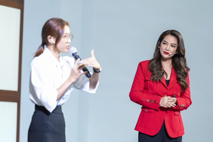 Thúy Vân và Trương Ngọc Ánh (trái qua) tại talkshow Thương hiệu cá nhân