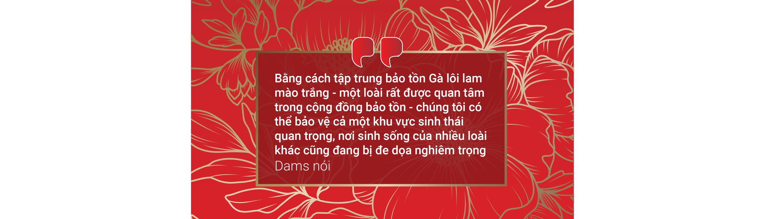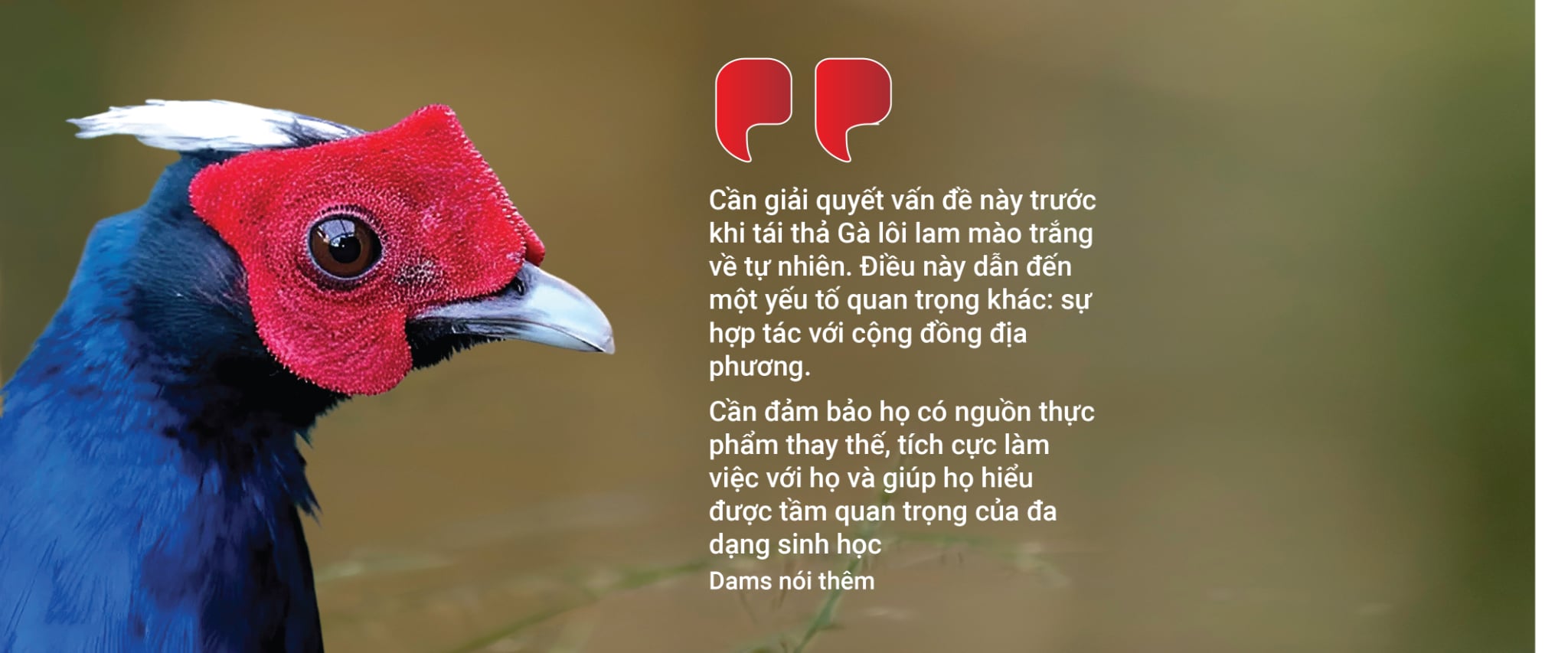 "Thông qua dự án bảo tồn gà lôi lam mào trắng, chúng ta có cơ hội bảo vệ không chỉ một loài, mà còn cả hệ sinh thái và cộng đồng địa phương. Thật tuyệt vời khi được góp phần vào một dự án như thế này" - Dams kết luận.