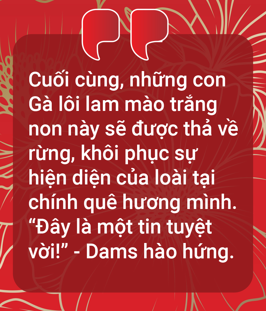 Hành trình trở về này rất cần sự đồng hành và sẻ chia của cộng đồng, của các nhà hảo tâm, của tất cả những ai quan tâm đến số phận của loài gà lôi lam mào trắng ở trong và ngoài nước.