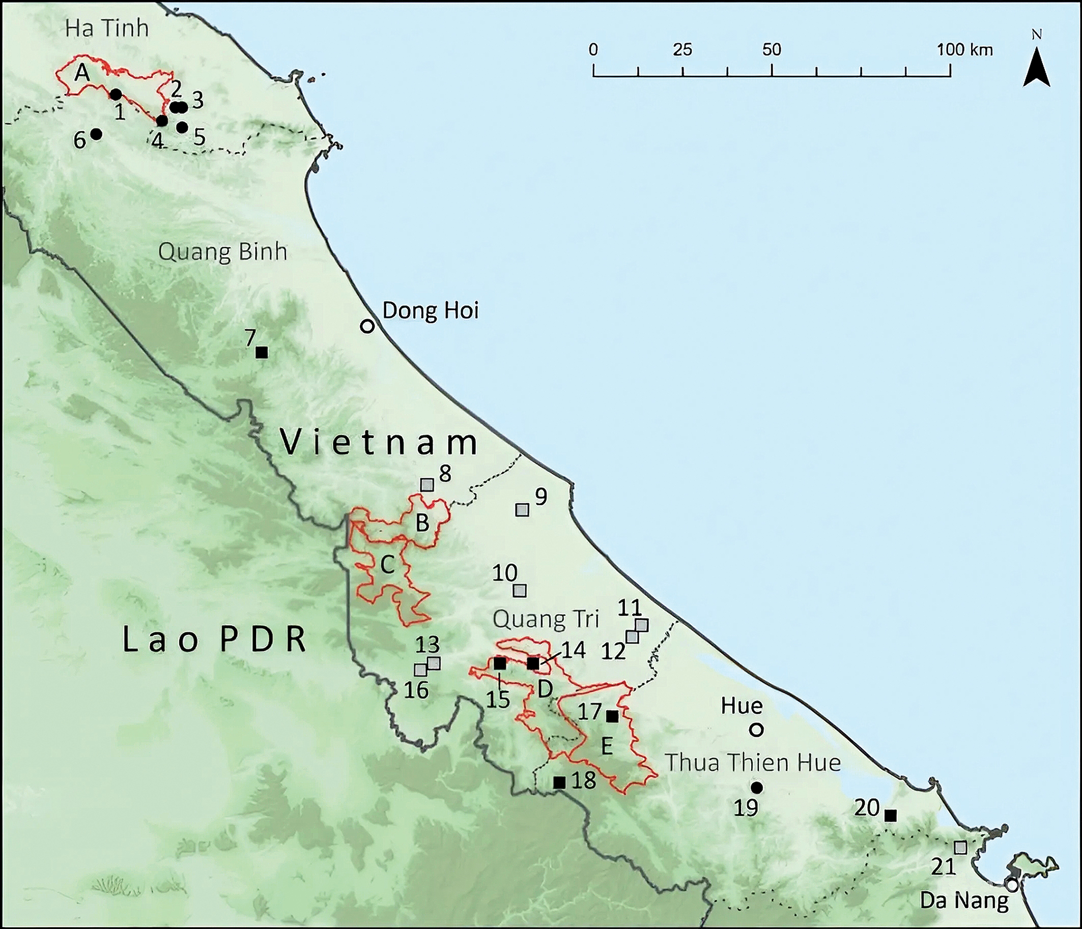Các địa phương ghi nhận sự xuất hiện của gà lôi lam mào trắng ở miền Trung Việt Nam. Ảnh đăng trên tạp chí trên BirdingASIA 42 (2024)