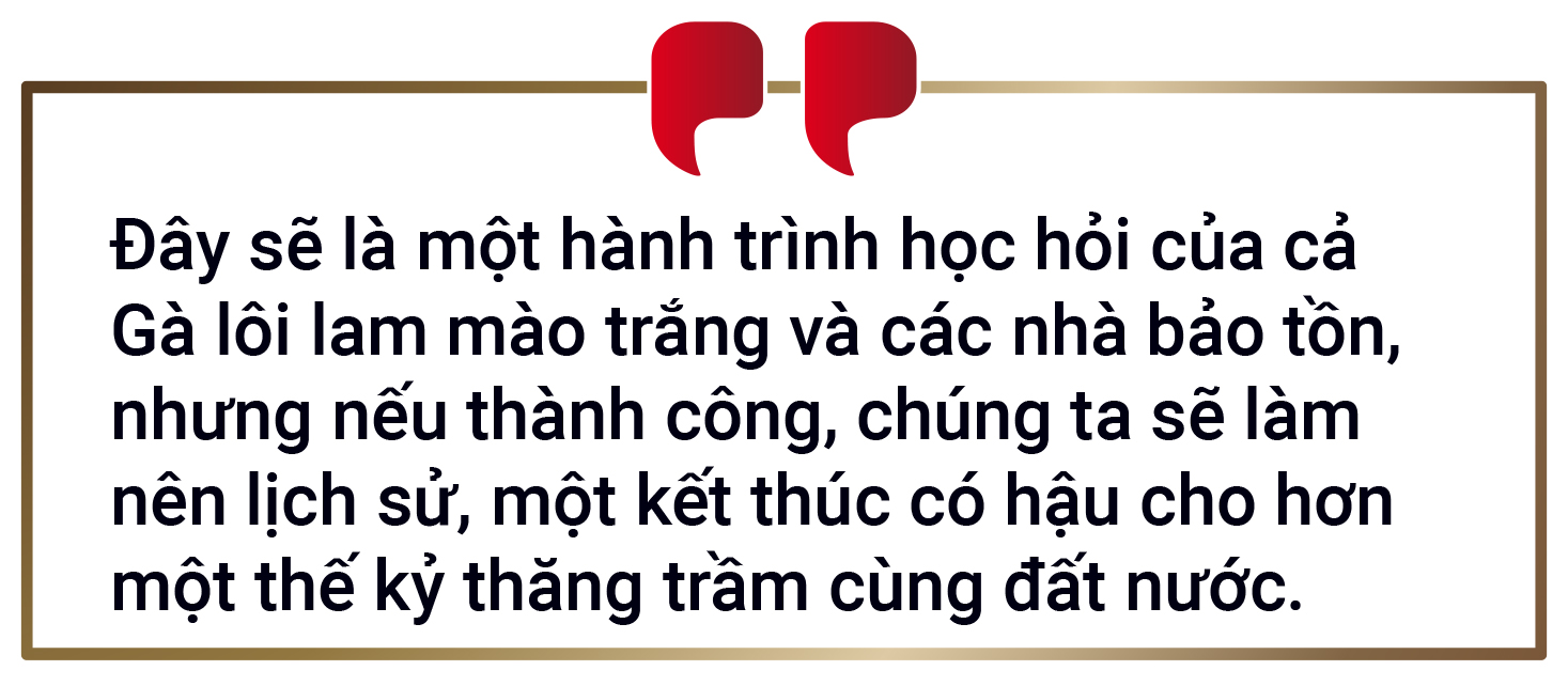 Tính từ những ngày đầu tìm kiếm, tái phát hiện loài "gà lạ" này trong những năm 1990 của thế kỷ trước đến nay, đã tròm trèm 30 năm nỗ lực đưa gà lôi lam mào trắng trở lại thiên nhiên.