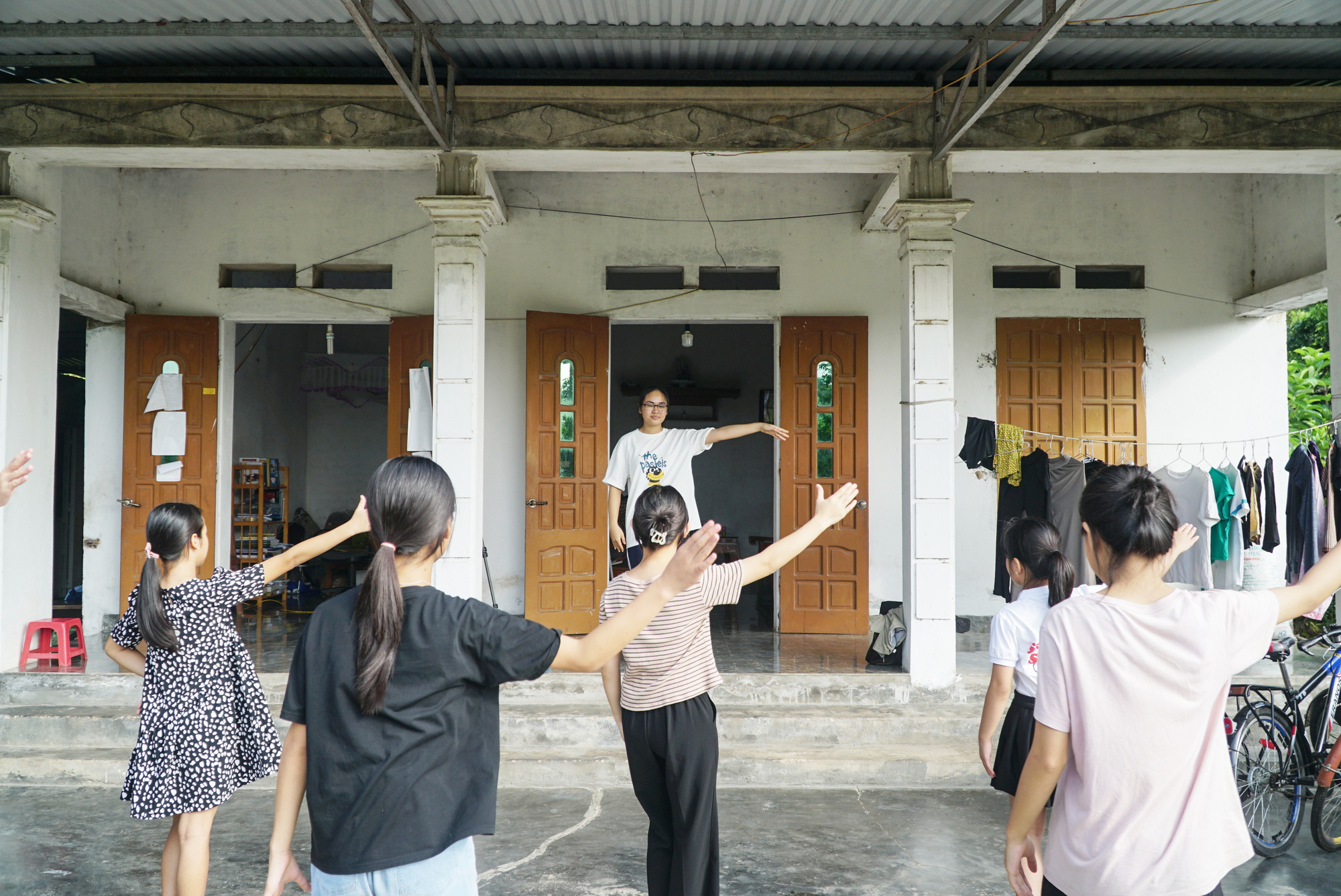 Vừa dạy học xong là Nguyên nhắn tin vào nhóm Zalo - quy tụ các bạn nhỏ năng nổ là "cây văn nghệ" của xóm, của trường. Khoảng sân trước nhà mẹ trồng đầy hoa nay được mượn làm sân tập văn nghệ cho các bạn nhỏ. Đứng nép mình trong góc nhà, bà Toàn không giấu được nụ cười hạnh phúc. Cũng bởi chẳng hạnh phúc nào hơn cho bằng trong nhà đầy ắp tiếng cười trẻ thơ.