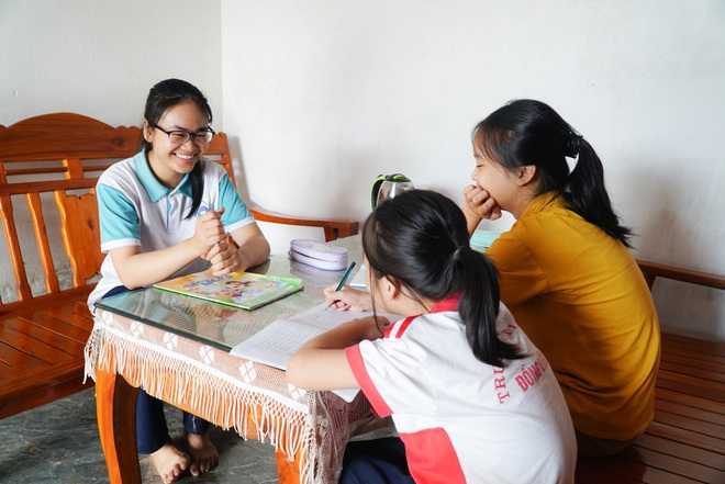 Tranh thủ thời gian nghỉ, Hải Nguyên dạy học cho đám trẻ trong làng