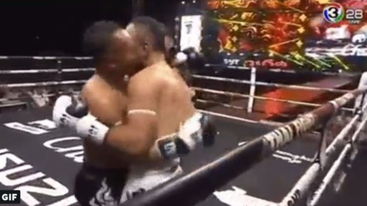 Trong lúc Barache nằm dưới sân, tỏ ra chưa hết choáng váng thì Saenchai còn gây ấn tượng bằng cách tiến lại gần rồi tặng cho đối thủ một nụ hôn.