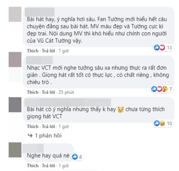 Tuy nhiên, ở phần bình luận, nhiều ý kiến trái chiều lại xuất hiện. Một số khen ngợi MV của Vũ Cát Tường quá xịn xò từ góc máy đến cảnh quay. Tuy nhiên, cũng không ít bình luận cho rằng lời ca khúc lẫn nội dung MV lần này quá khó hiểu, không phục vụ cho khán giả đại chúng. Thậm chí, có người phải coi tới lần thứ ba vẫn chưa thể hiểu nổi MV muốn nói gì.