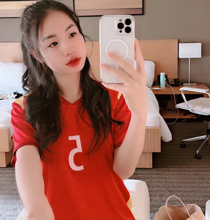 Nhan sắc của "hot girl sân cỏ" Trần Thị Duyên.Góp mặt cùng đồng đội tại buổi lễ mừng công, "hot girl sân cỏ" Trần Thị Duyên khiến nhiều người ngỡ ngàng trước gương mặt xinh đẹp của mình, sau khi cởi bỏ chiếc khẩu trang. Trước đó, cô là một trong những "bóng hồng" nổi bật của đội hình tham dự Asian Cup vừa qua, được không ít anh chàng sẵn sàng trình... "sổ hộ nghèo" để có được "in tư" hoặc xin vị trí ưu tiên.
