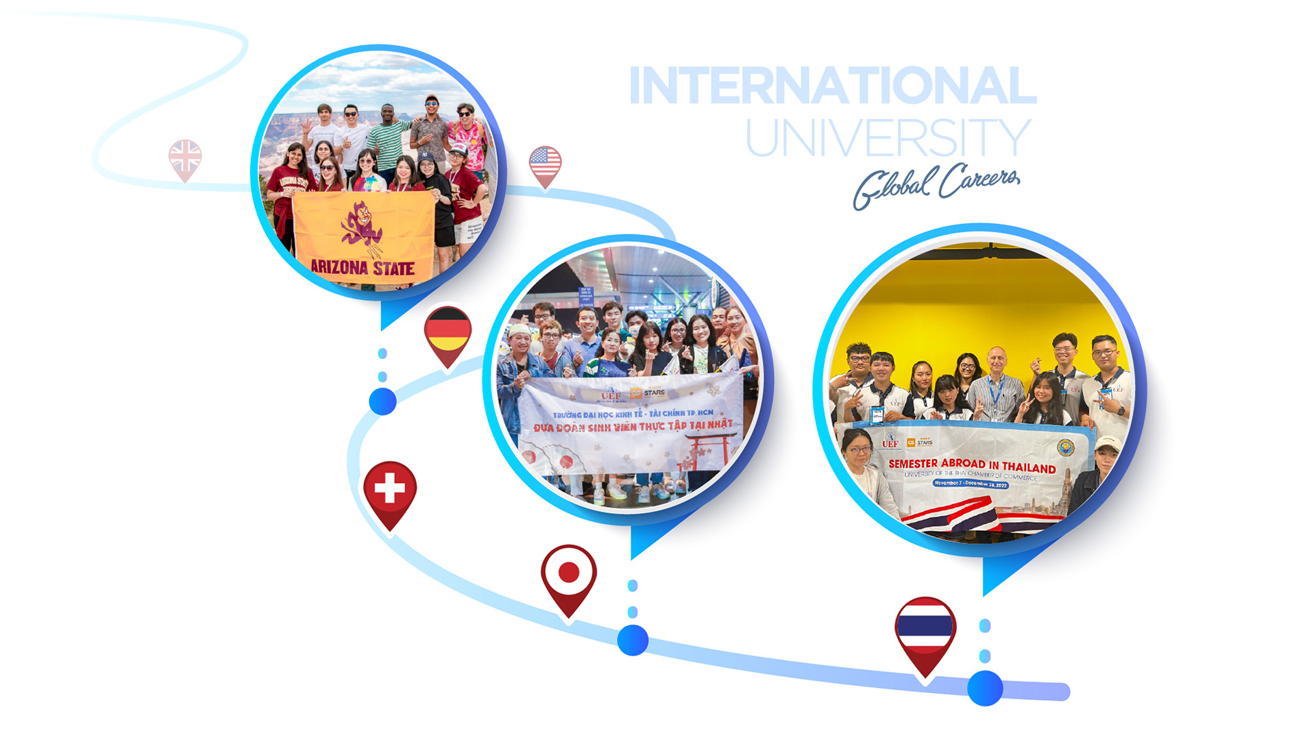 Trước đó, UEF cũng đưa sinh viên tham gia chương trình trao đổi tại Đại học Quốc tế Kobe (Nhật Bản), University College of Lillebaelt (Đan Mạch), Trường Kinh doanh quốc tế SolBridge (Hàn Quốc), Trường đại học SEGi (Malaysia), Đại học Bangkok (Thái Lan), Trường Kinh doanh Budapest (Hungary),... Ngoài ra, các bạn cũng được tạo điều kiện tham quan tại Tập đoàn Điện lực Vương quốc Thái Lan (EGAT), Hệ thống đại siêu thị nội thất IKEA (Thái Lan).