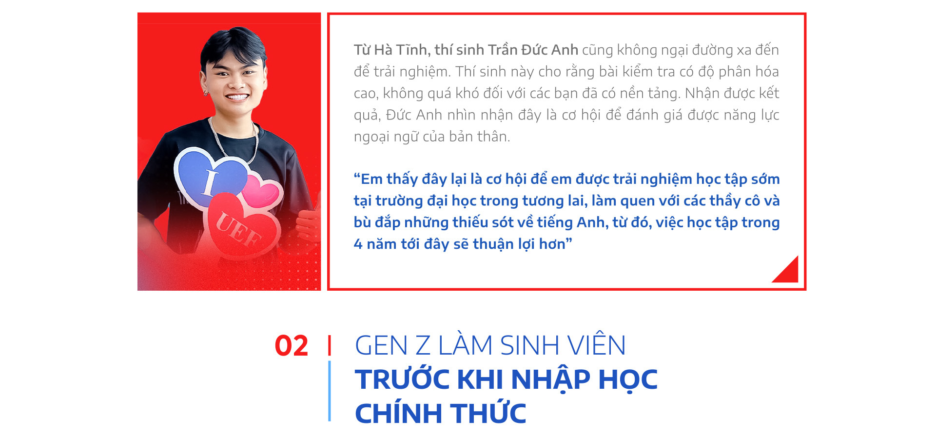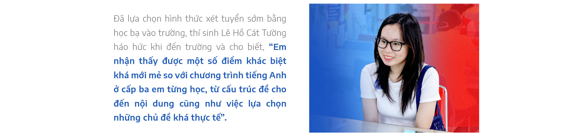 “Trường mở ra chương trình như thế này rất có ích. Các hoạt động trong chương trình đã giúp thí sinh được trải nghiệm cảm giác học tiếng Anh trong môi trường đại học trước khi học chính thức. Dù chỉ là một phần nhỏ trong chương trình đại học, nhưng đủ để chúng em làm quen, thích nghi sớm và đỡ bỡ ngỡ. Em cũng hy vọng, khi chính thức vào trường sẽ có nhiều hoạt động bổ ích tương tự cho tân sinh viên”, thí sinh Dương Việt Luận (Q.12, TP.HCM) bày tỏ.