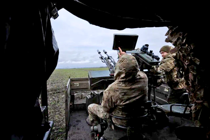 Một binh sĩ Ukraine vận hành pháo phòng không để nhắm bắn các máy bay không người lái (drone) của Nga tại khu vực Donetsk - Ảnh: NEW YORK TIMES